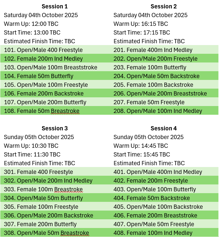 This event is aimed at Club Swimmers in accordance with Swim England Open Meet Licensing Guidelines Level 3 and Swim England safe competition Guidelines.